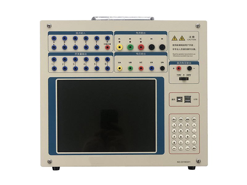 2.單機獨立運行,裝置通過大屏幕觸摸液晶顯示屏進行操作,中文顯示。可完成現(xiàn)場大多數(shù)試驗檢定工作,可對各種繼電器(如電流、電壓、反時限、功率方向、阻抗、差動、低周、同期、頻率、直流、中間、時間等)及微機保護進行檢定,并可模擬各種復雜的瞬時性、永久性、轉(zhuǎn)換性故障進行整組試驗。